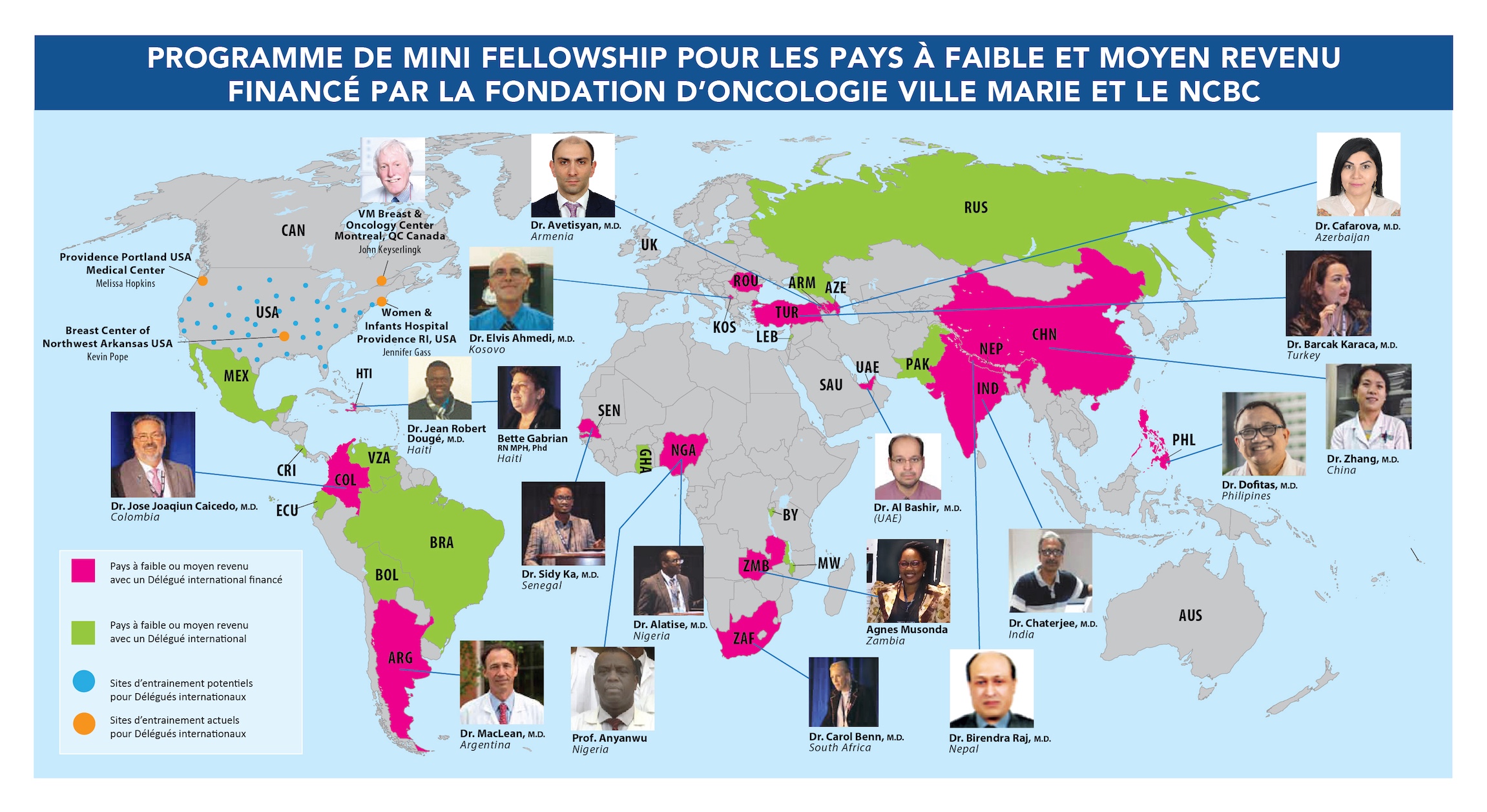 Ces délégués internationaux sont choisis pour leur expertise individuelle et pour leur participation directe aux soins du cancer du sein dans leurs pays respectifs. Leur engagement, documenté dans le cadre d’un processus concurrentiel, à affronter les défis et à surmonter les obstacles aux soins du cancer du sein leur donne la crédibilité qui justifie que la FOVM offre du financement pour un mini stage de la FOVM à des délégués internationaux particuliers.