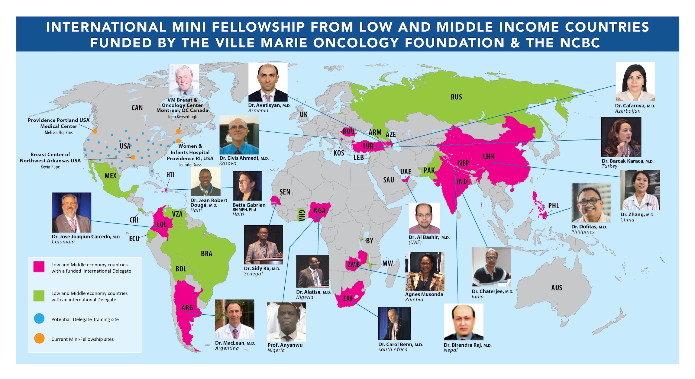 The VMOF is supporting the VMOF/NCBC International Delegate Program (IDP), initiated by Dr. Keyserlingk, a VMOF Medical advisor, which now includes 52 International Delegates who are actively involved with breast cancer care in 41 Lower and Middle-Lower Income Countries (LMICs).